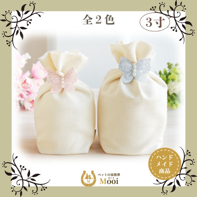 ペット 仏具 3寸 骨袋 かわいい おしゃれ メモリアルグッズ ペット供養 「バタフライ 3寸」