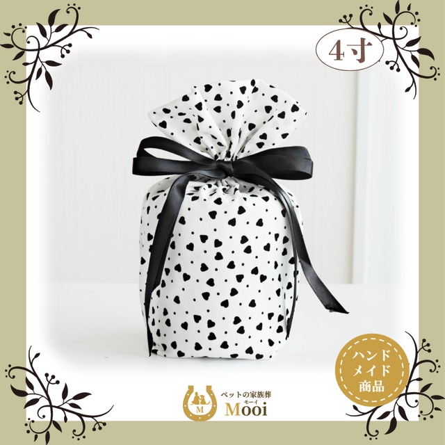 ペット 仏具 4寸 骨袋 かわいい おしゃれ メモリアルグッズ ペット供養 「ハート(モノクロ)4寸」