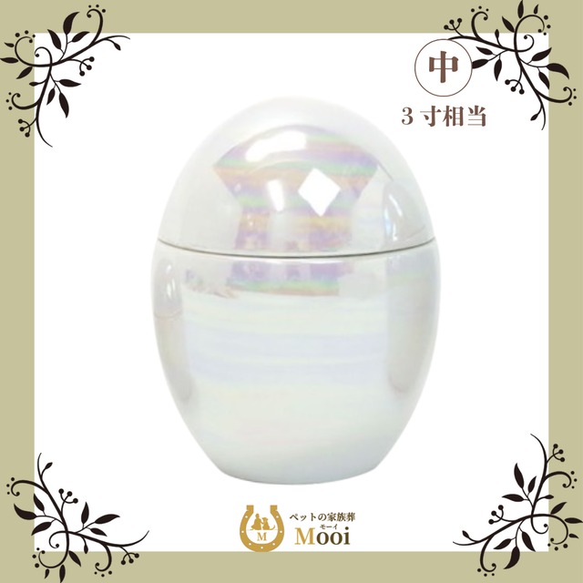 蓋がロック式のミニ骨壺です。たまご型でラスター加工の輝きがキレイな製品です。 チワワなどの超小型犬や子猫やうさぎ、または分骨用に最適なサイズです。 【サイズ】 3寸相当:幅10×高13.5×口7.5㎝ ※ご注文のタイミングで品切れとなっている場合がございます。ご了承ください。