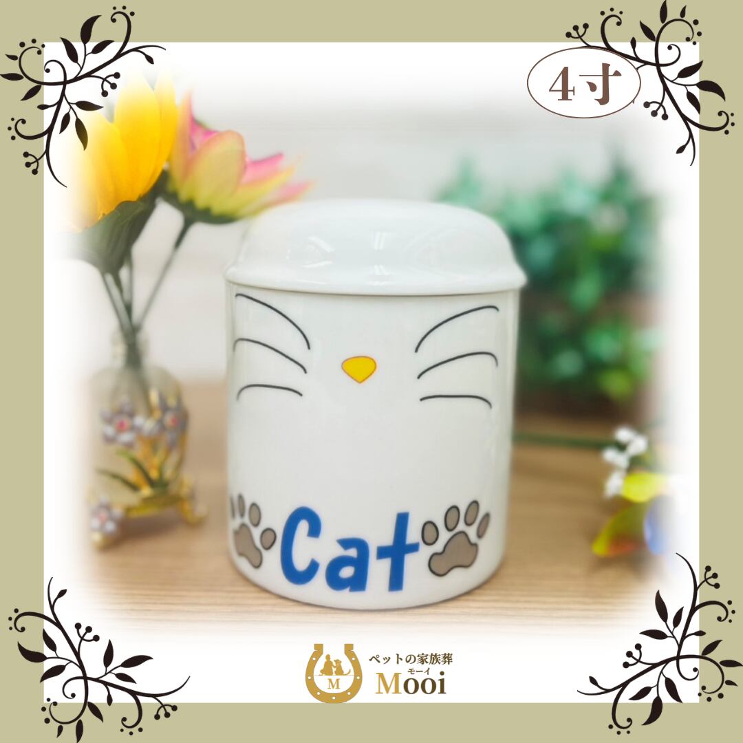 ペット 仏具 4寸 骨壺 かわいい メモリアルグッズ ペット供養 「イラスト骨壷 Cat 4寸」
