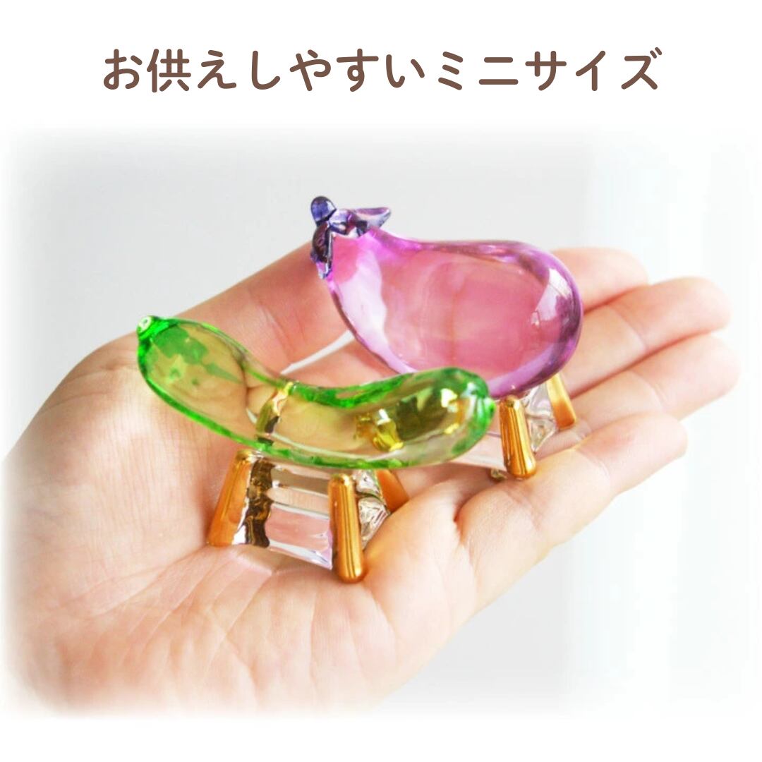 涼しげな印象でお盆の季節にぴったりな、かわいいミニサイズのガラス精霊馬です。ペットちゃんが楽々迷わず帰れるように用意しましょう。