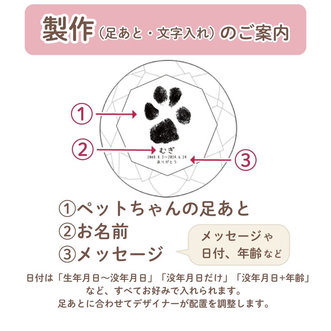 美しくダイヤモンドのようにきらめく、沢山の笑顔をくれたペットちゃんにぴったりのデザイン。