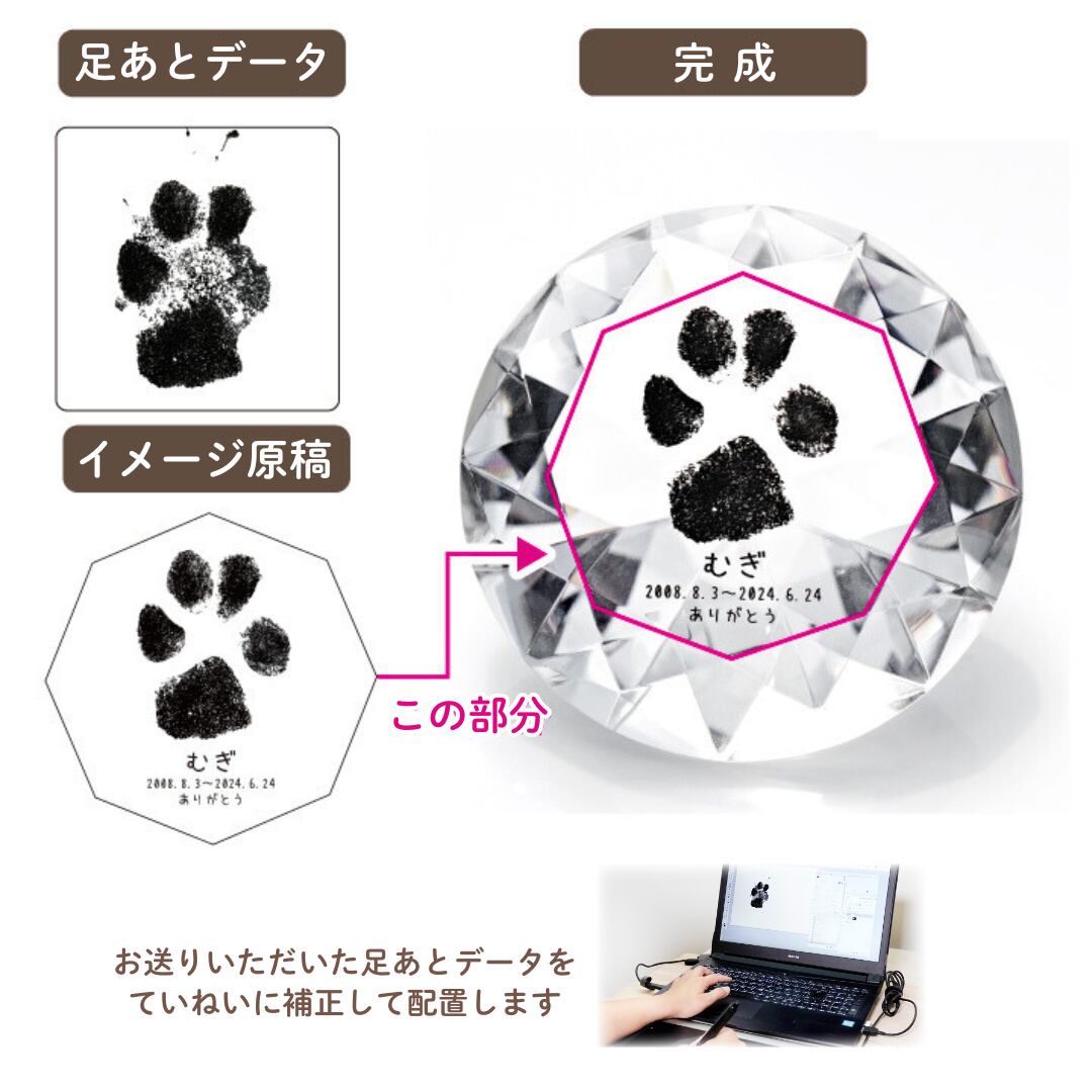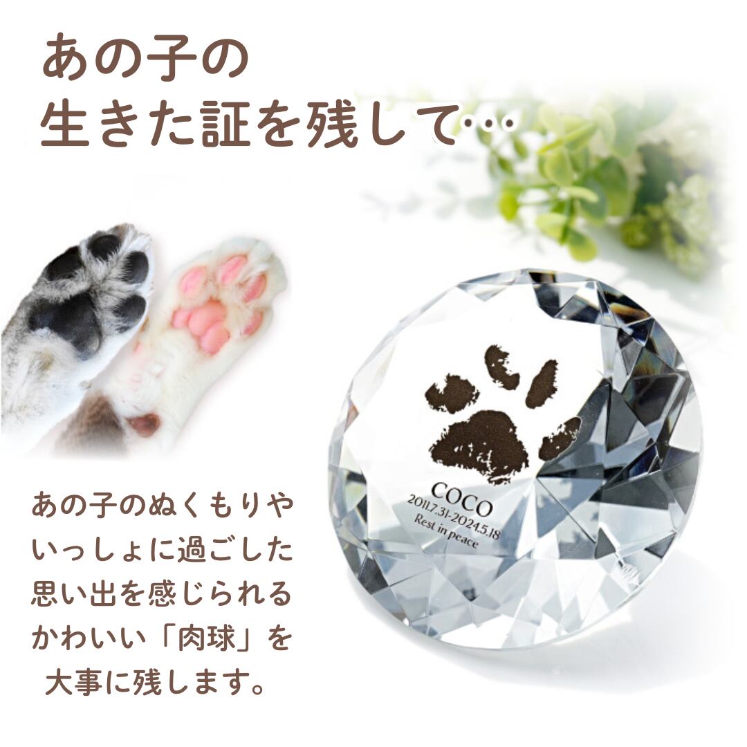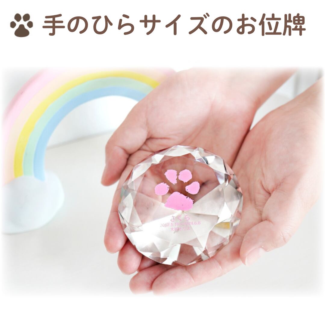 ペット 仏具 かわいい 位牌 オリジナル メモリアルグッズ ペット供養 「ペット位牌 ダイヤカットクリスタル 足あと」