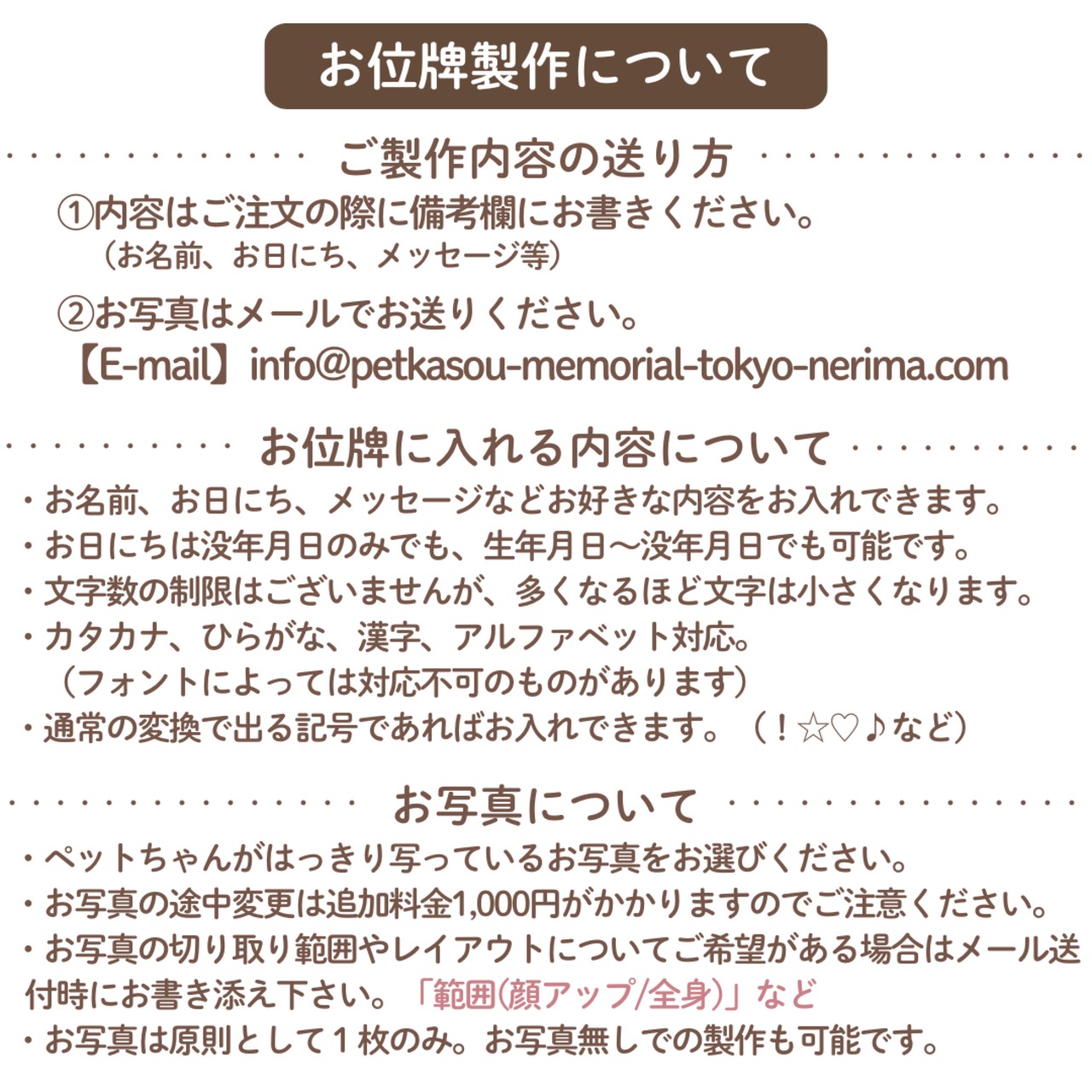 お写真とお名前などをお入れした、ずっと大切にしていただけるお位牌です。
