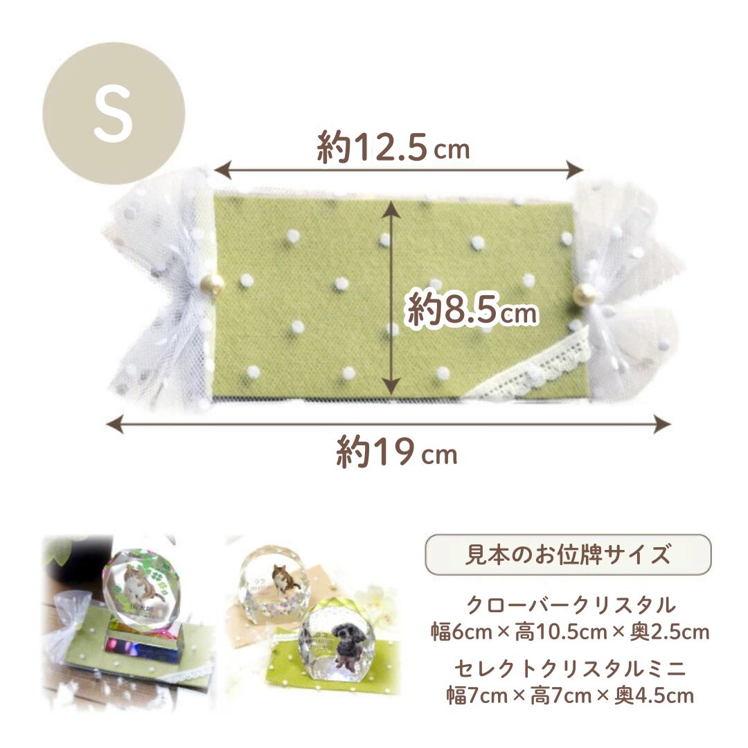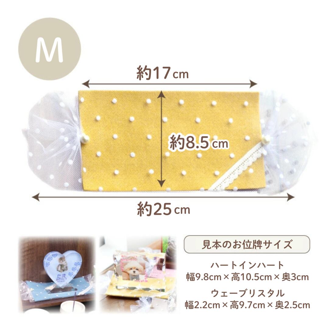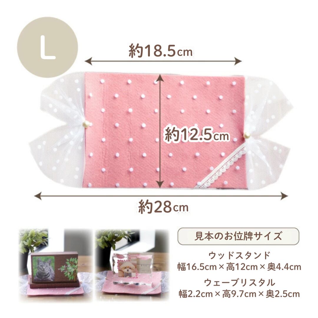 ペットちゃんのお位牌のためにつくられた、ドットのチュールとパステルカラーがかわいい敷物です。これ一つで、大事なお位牌が引き立ちます。3つのサイズ、5つのカラーからお選びいただけます。