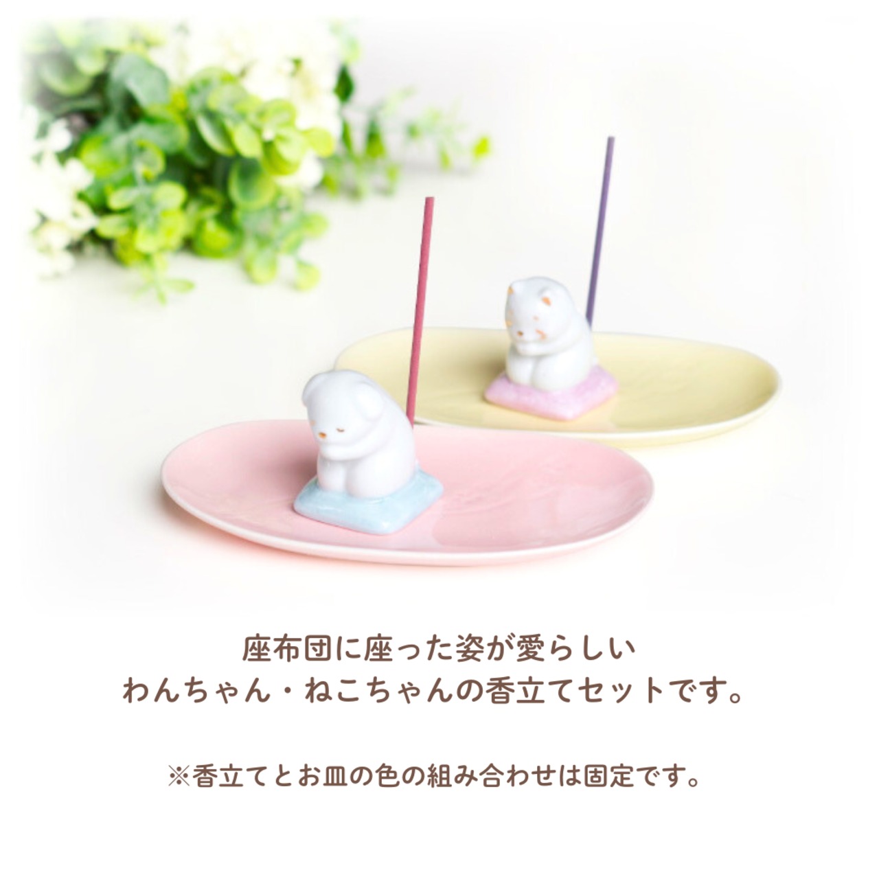 とってもかわいいわんちゃん・猫ちゃんが選べる香皿・香立てセット。インテリア感覚でお供えいただけるので、ペットちゃんを身近に想いながら供養できます。