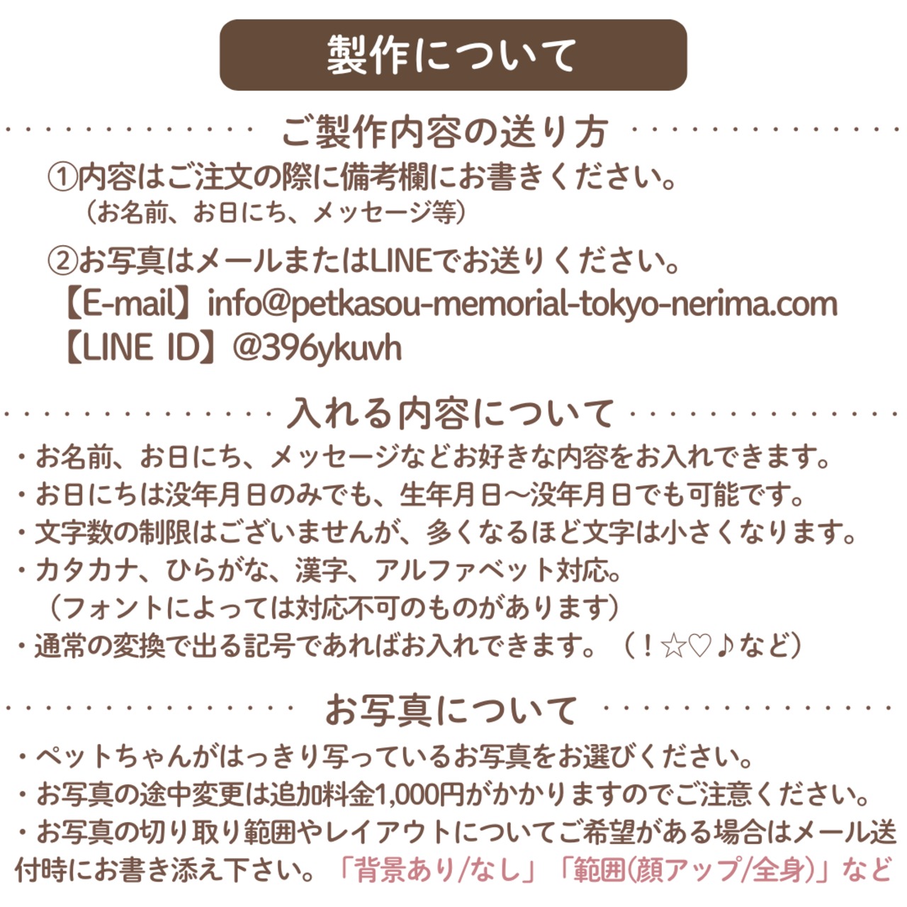ペットちゃんの大事な遺毛、ひげなど、小さな遺品を納めてずっとお手元で供養するためのかわいい木製のケースです。写真と名前、メッセージなどをお入れして、世界に1つのあの子だけのケースをお作りします。
