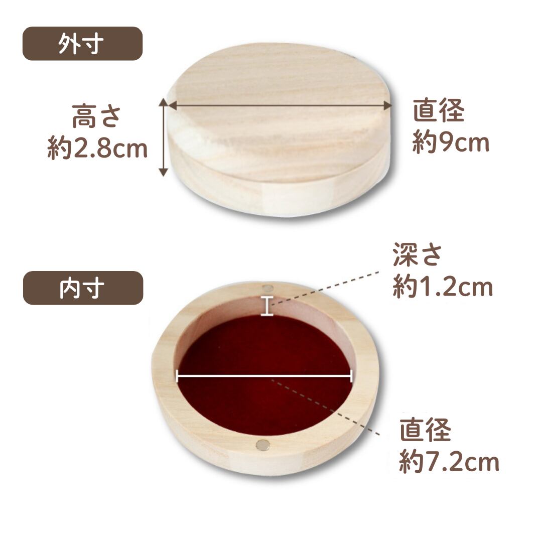 外寸:直径 約9cm×高さ(厚み) 約2.8cm / 内寸:直径 約7.2cm×片側の深さ 約1.2cm