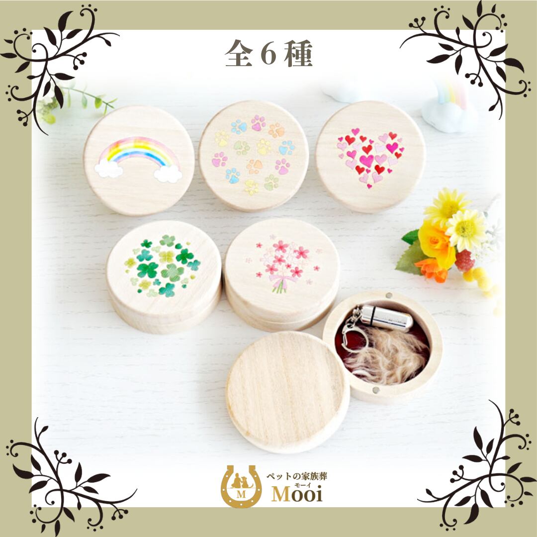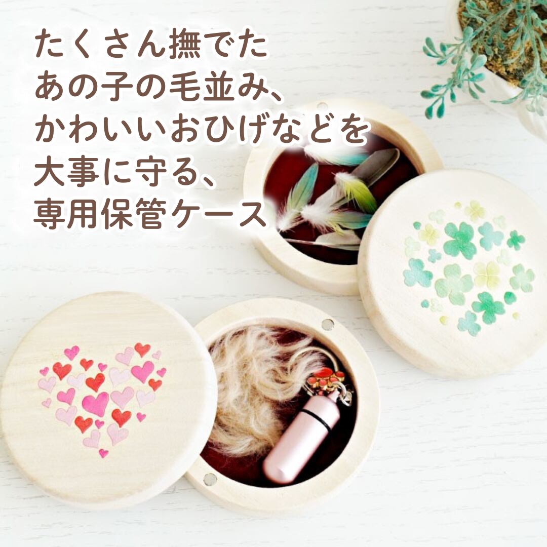 ペットちゃんの大事な遺毛、ひげなど、小さな遺品を納めてずっとお手元で供養するためのかわいい木製の丸形ケースです。