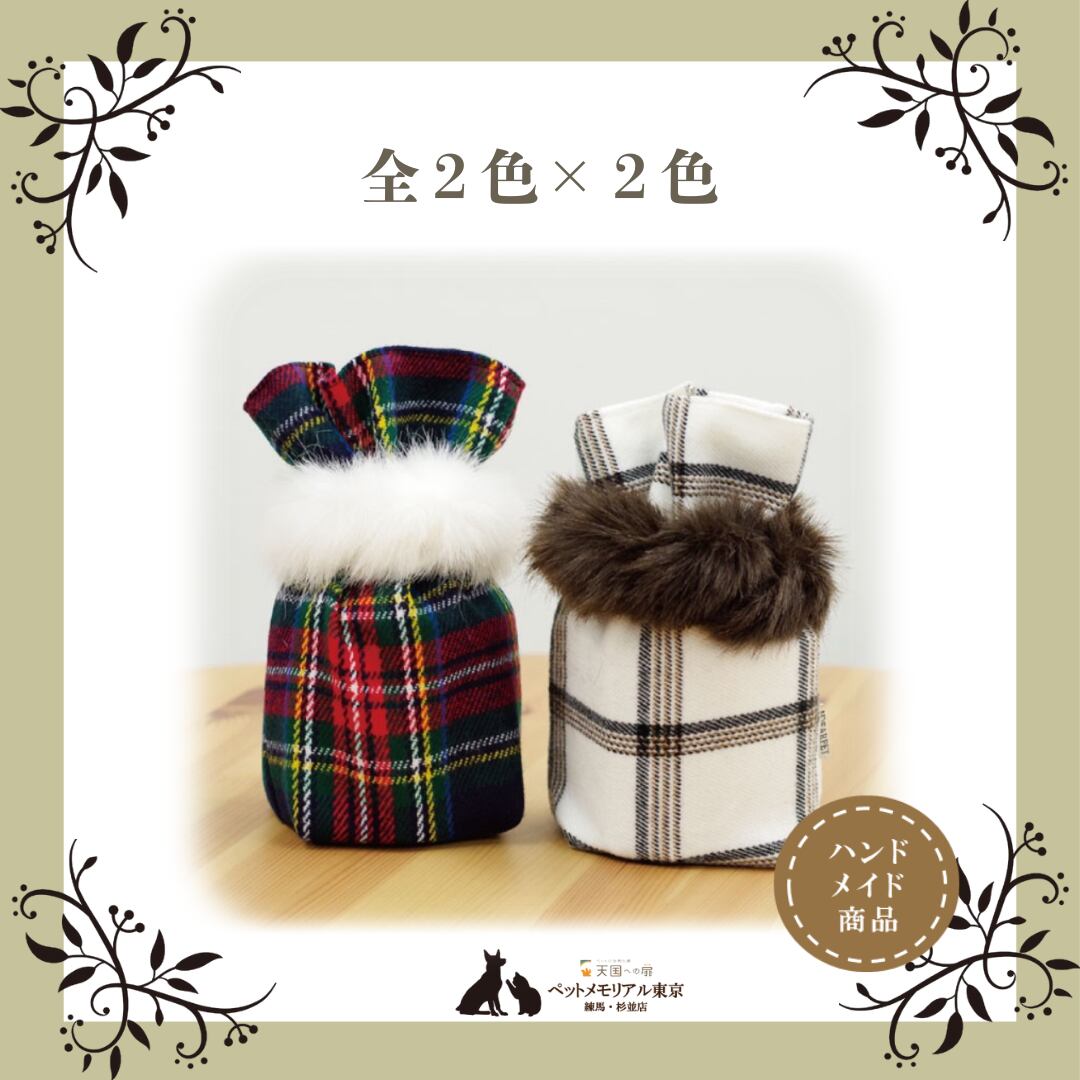 おしゃれなあの子によく似合う、チェック生地とふわふわのファーが特徴のお洋服のような骨壷カバーです。