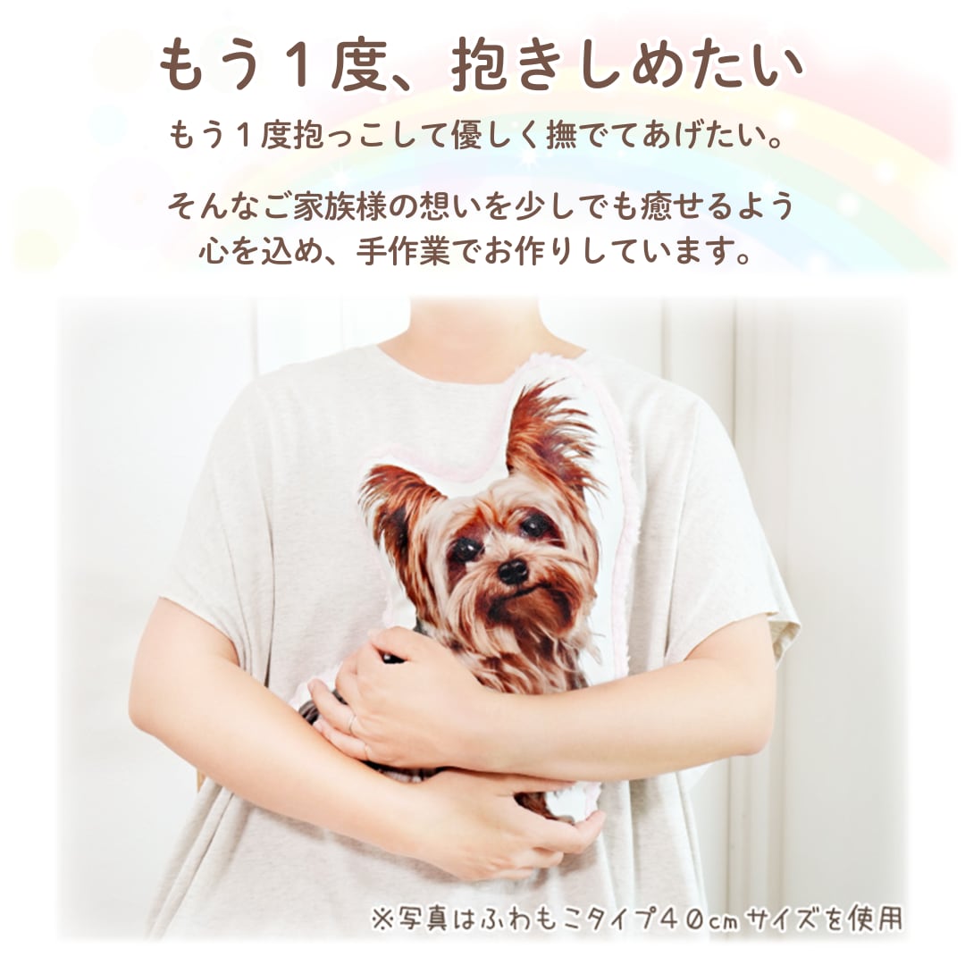 お写真から作る、世界に1つのかわいいオーダーメイドクッションです。ぎゅっと抱きしめて、虹の橋のペットちゃんへ想いを伝えてください。
