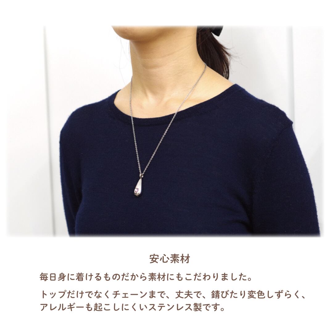 ペンダントはチェーンもステンレス製ですので、アレルギーを起こしにくい素材になっています。