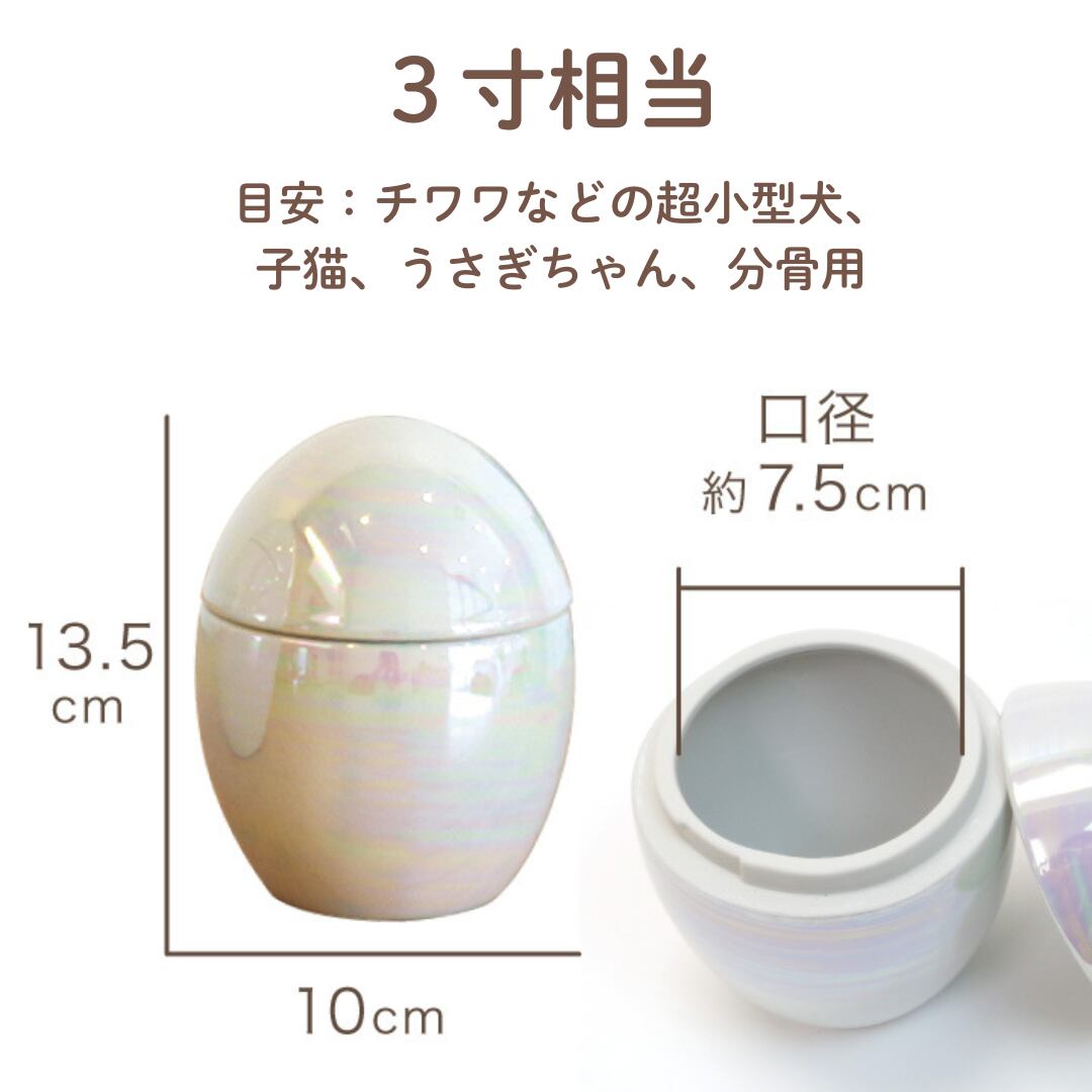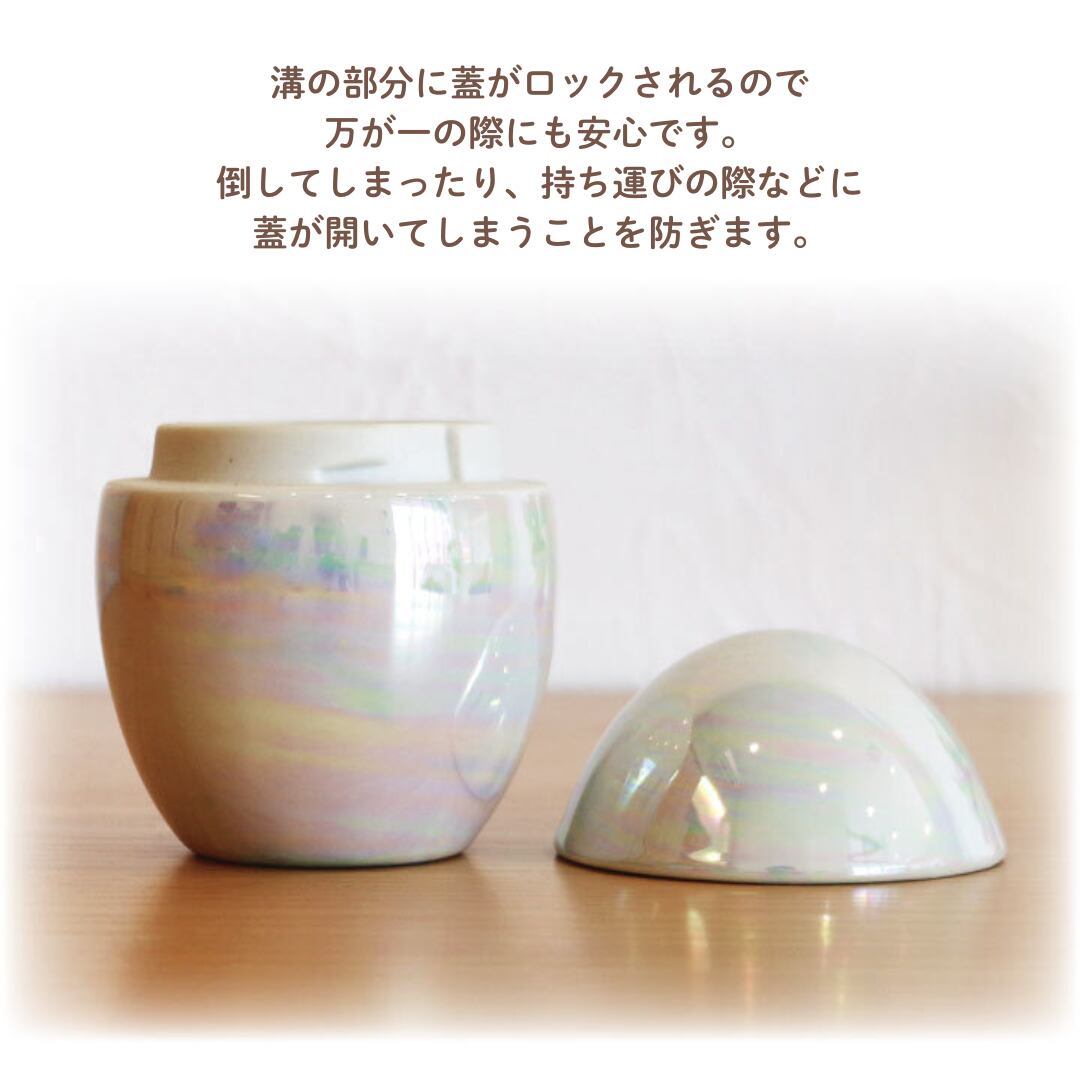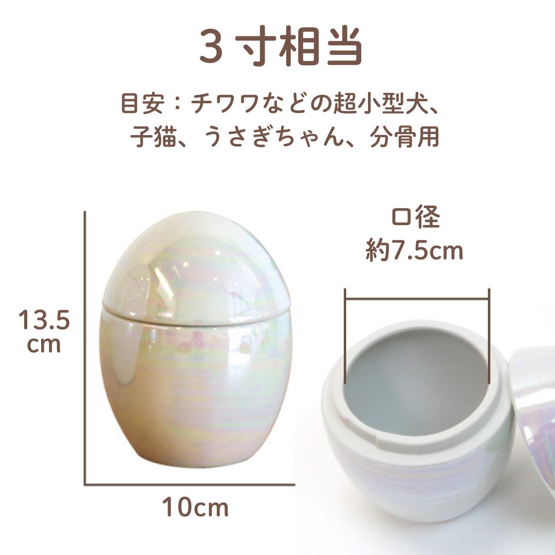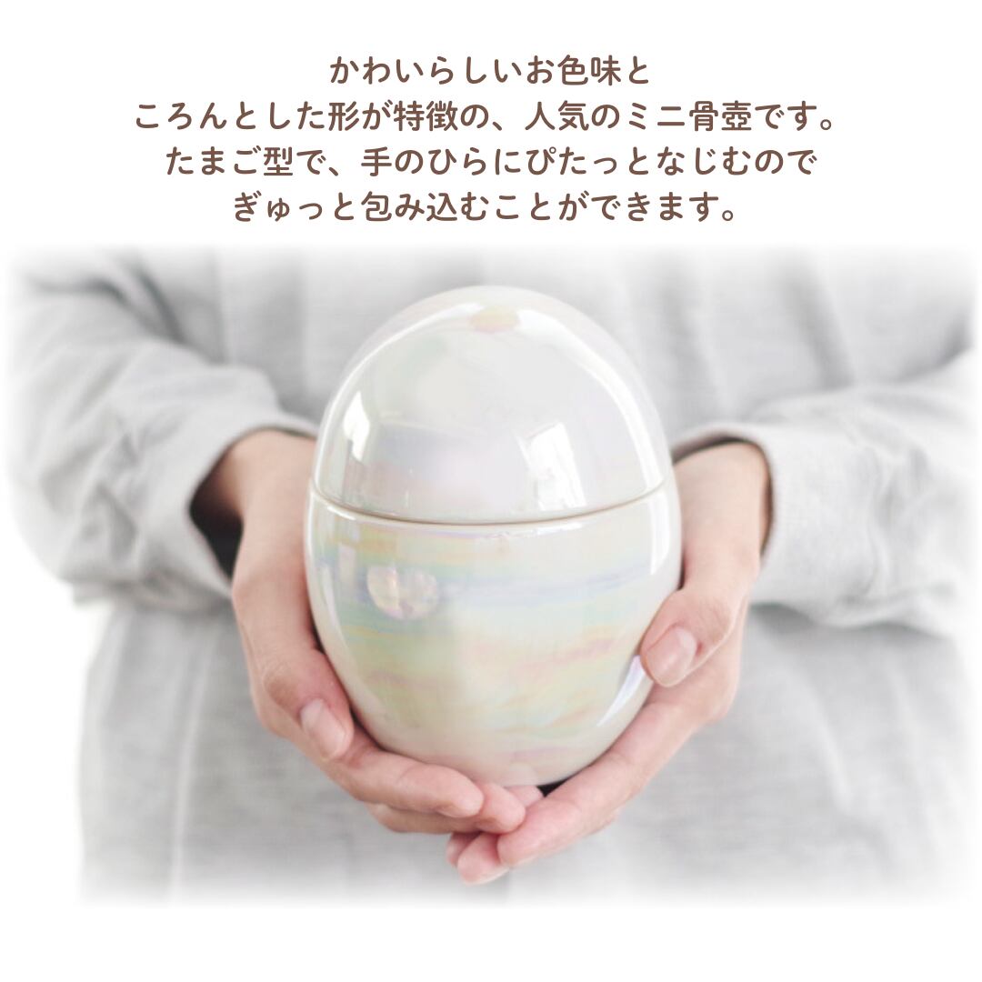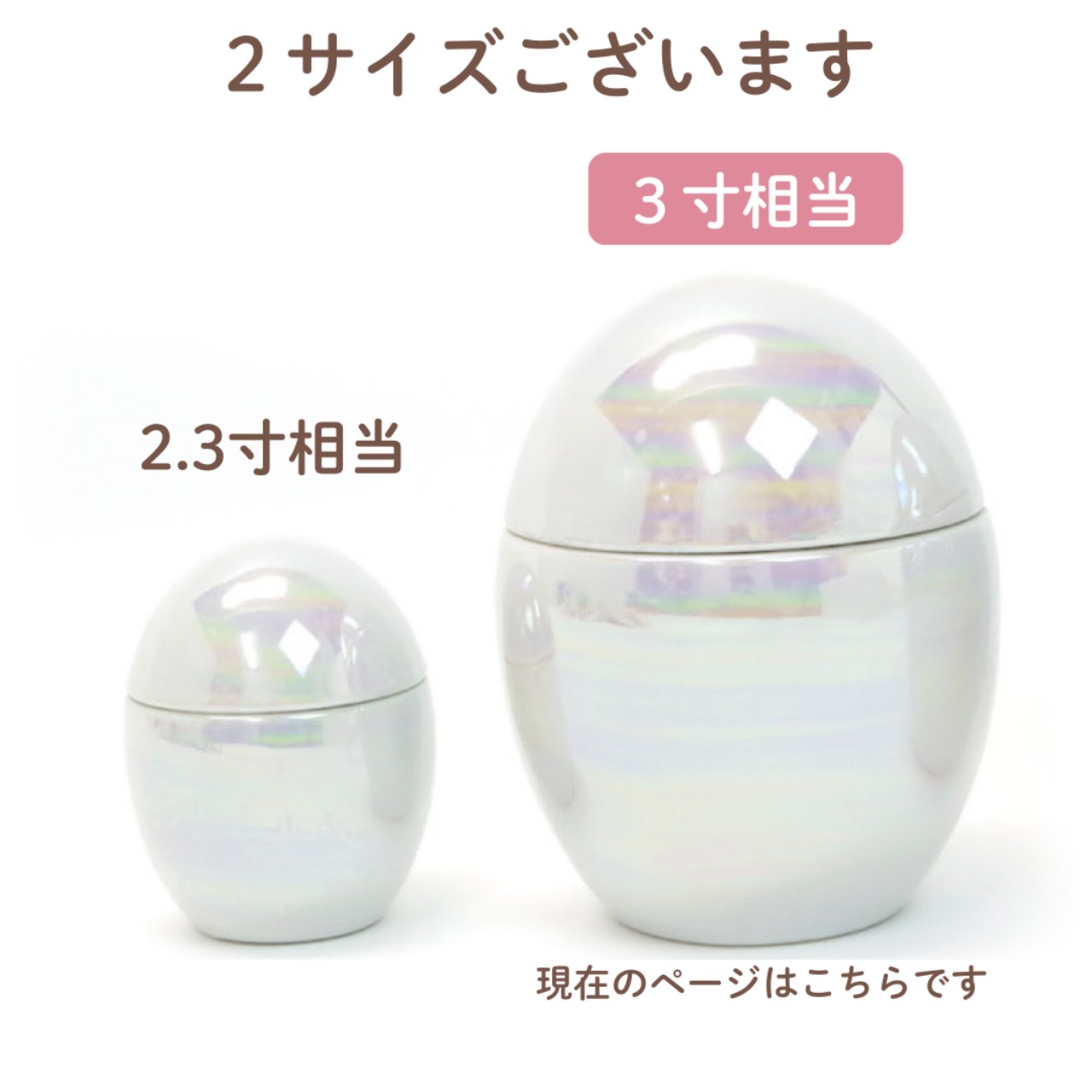蓋がロック式のミニ骨壺です。たまご型でラスター加工の輝きがキレイな製品です。