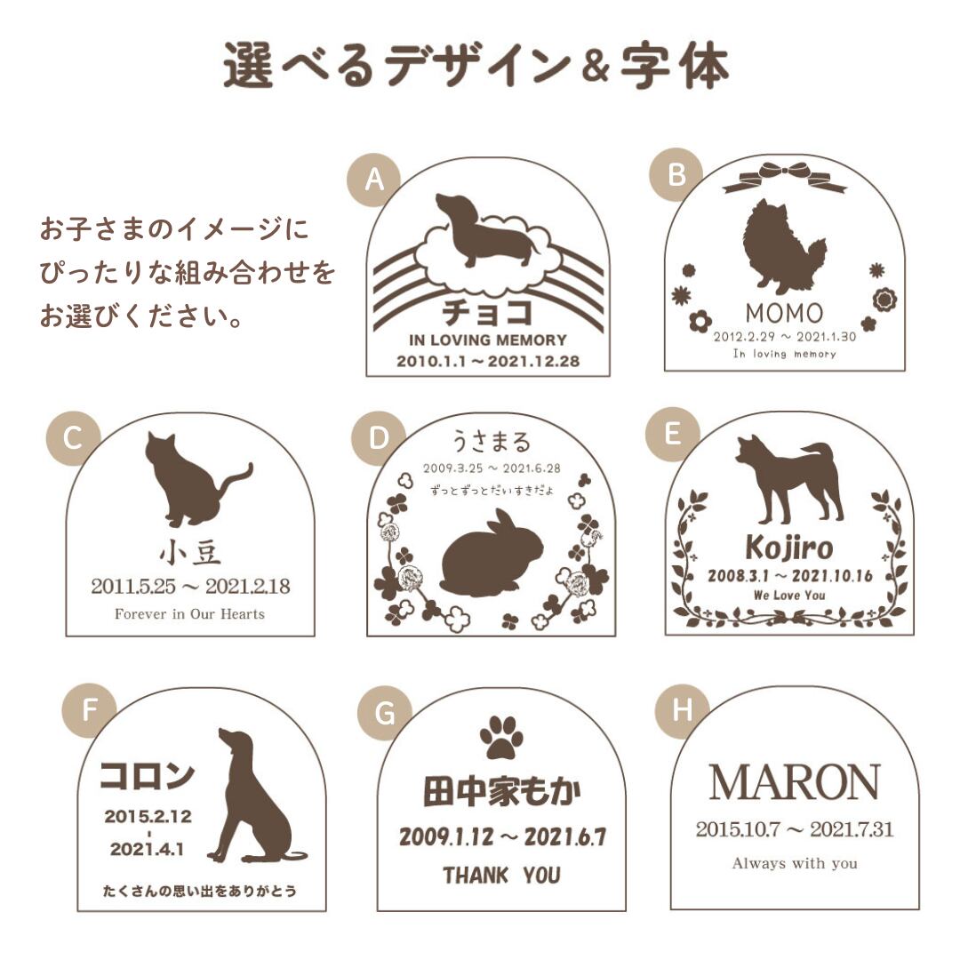 デザインや字体をお選びいただけます。