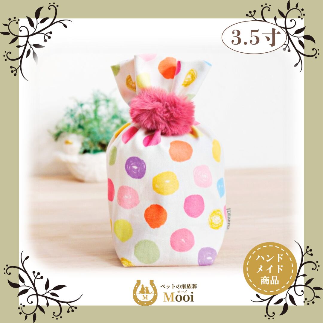 ペット 仏具 3.5寸 骨袋 かわいい おしゃれ メモリアルグッズ ペット供養 「巾着骨袋3.5寸 水玉」