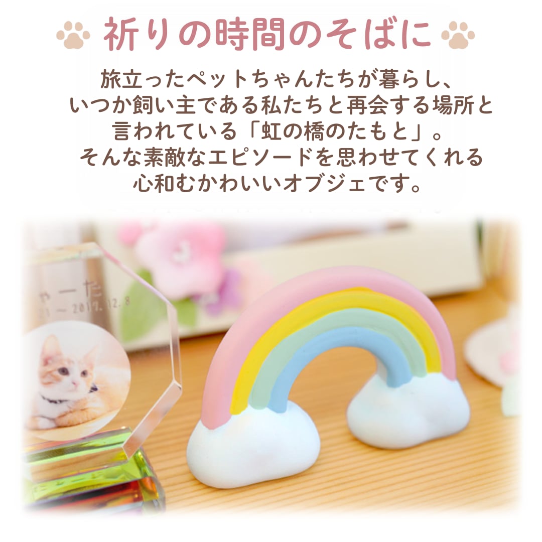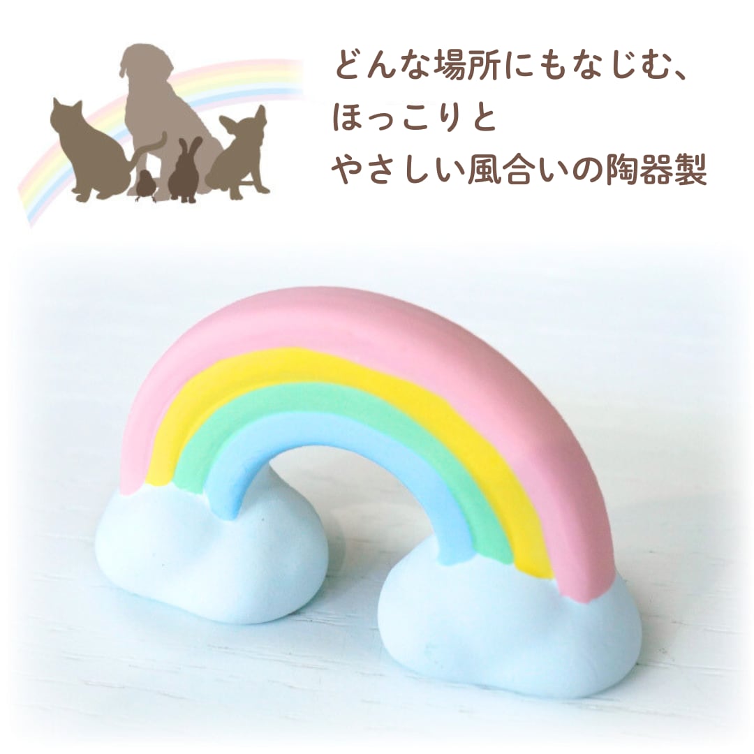 虹の橋のあの子に想いを馳せて飾りたい、陶器製のかわいい虹のオブジェです。