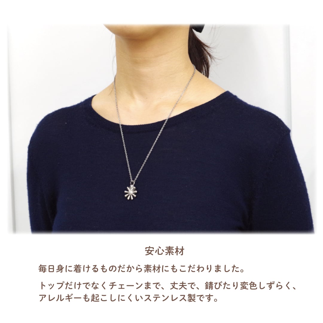 ペンダントはチェーンもステンレス製ですので、アレルギーを起こしにくい素材になっています。
