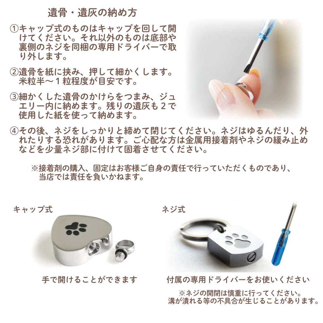 ペットちゃんのお骨を納めるクリメイションジュエリーです。