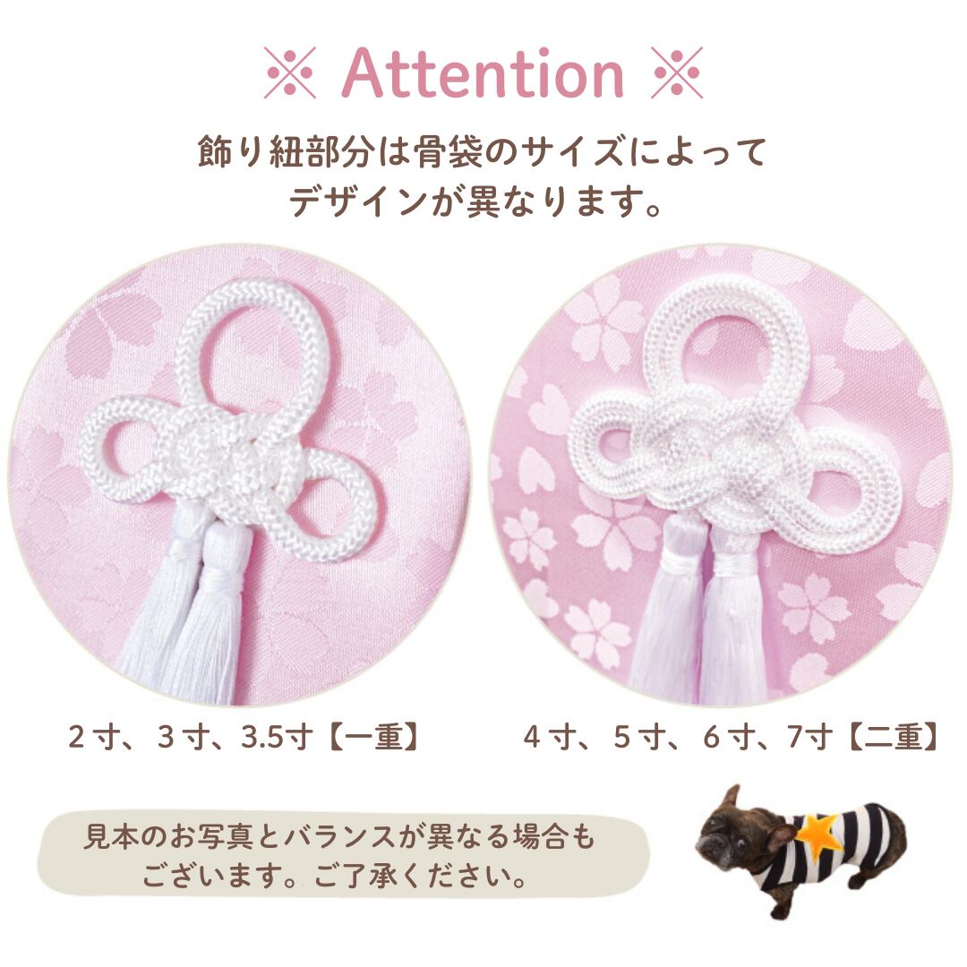 パステルカラーとさくら&ハート模様がかわいい、ペットちゃんにぴったりの骨袋です。特別なあの子のお骨壷をやさしく包みます。