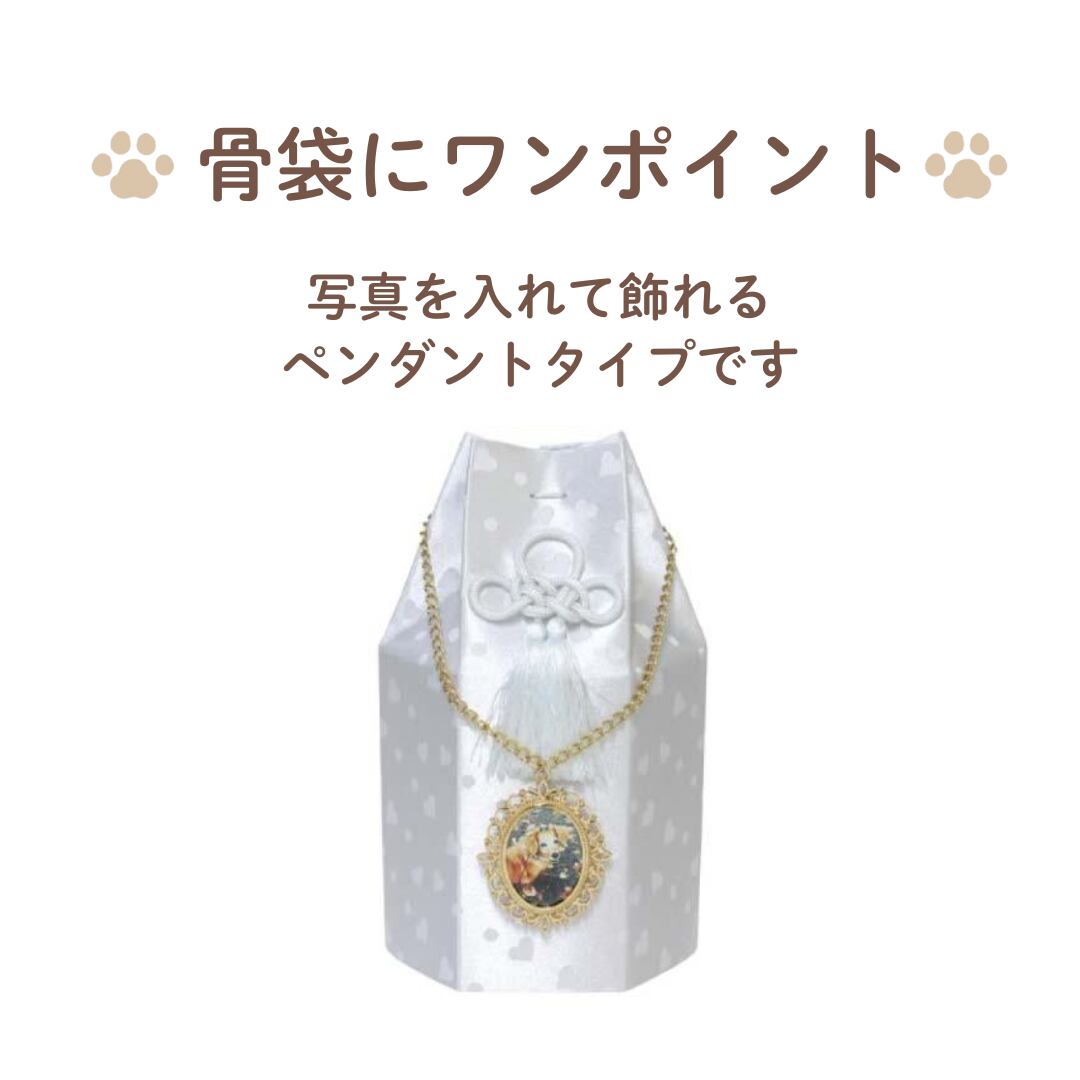ペット骨袋を飾れる、ペンダント型のフォトフレームです。