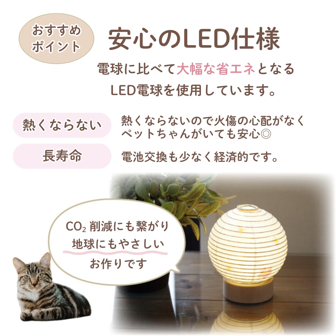 丸いかたちとお花の模様がかわいいライトです。ろうそくを使うのが心配なお部屋やお仏壇、供養の場にもおすすめです。やさしい明かりを灯しながら、いつでも大事なペットちゃんを偲んで下さい。