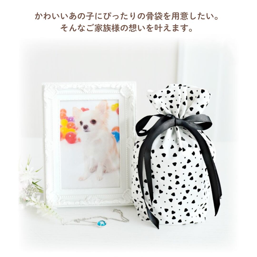ペット 仏具 3.5寸 骨袋 かわいい おしゃれ メモリアルグッズ ペット供養 「ハート(モノクロ)3.5寸」