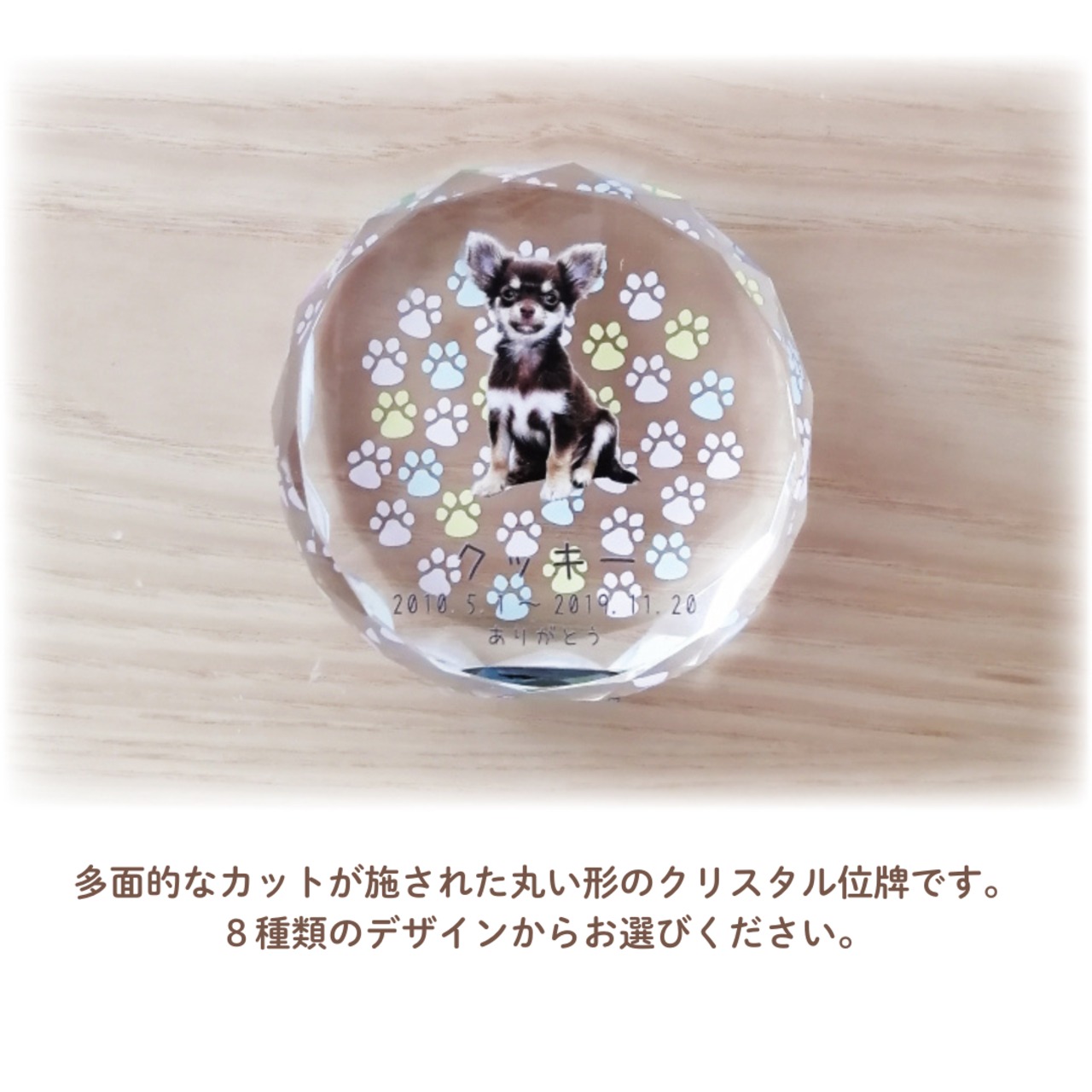 ペット 仏具 写真入り 位牌 かわいい オリジナル メモリアルグッズ ペット供養 「ペット位牌 ラウンドクリスタル」