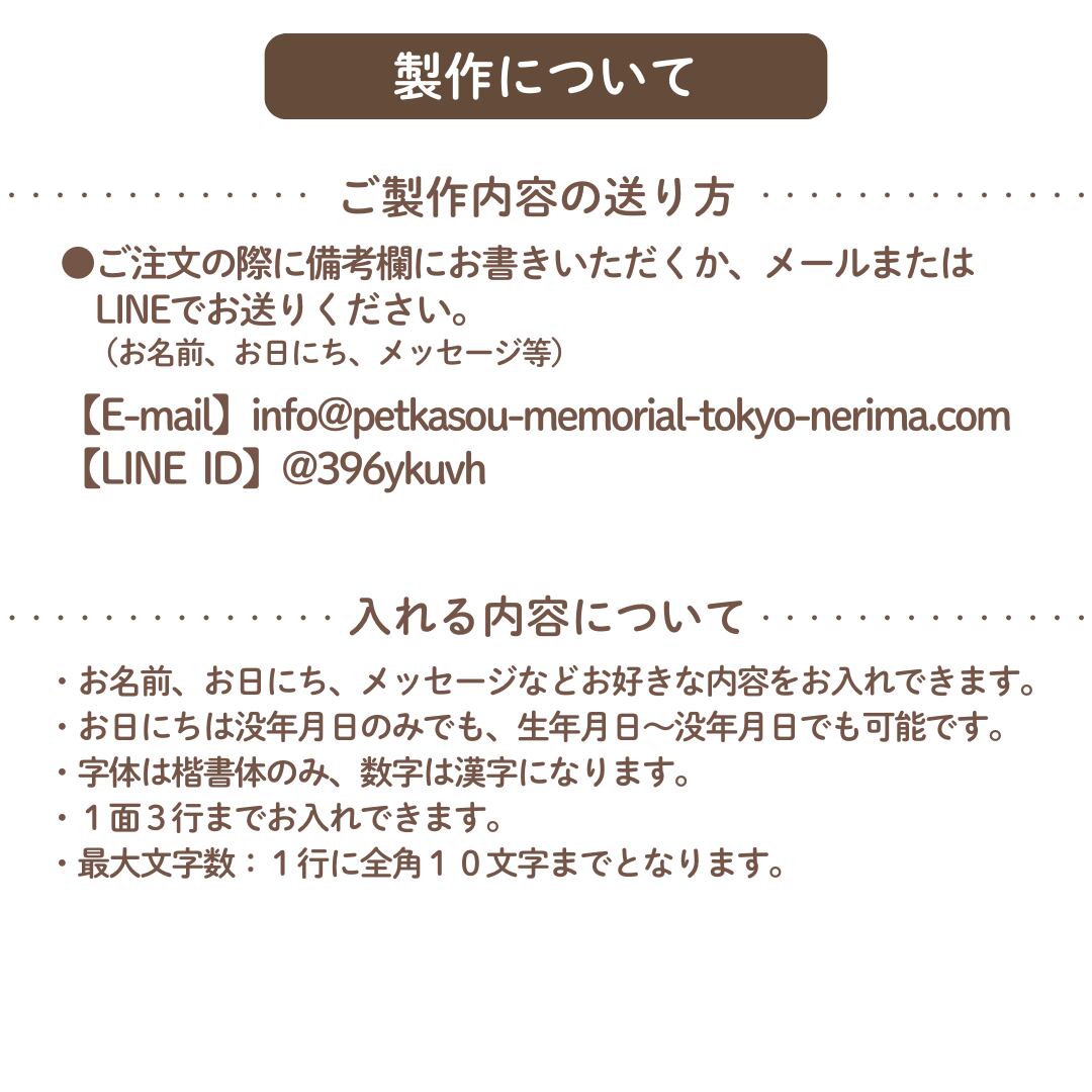 四十九日の法要はもちろん、どんなときでもペットちゃんのためにお作りいただけます。