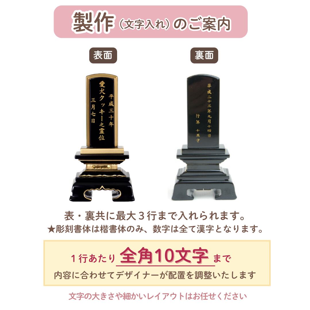 ペット仏壇やコンパクトな仏具にも合うように、小さなお位牌にいたしました。