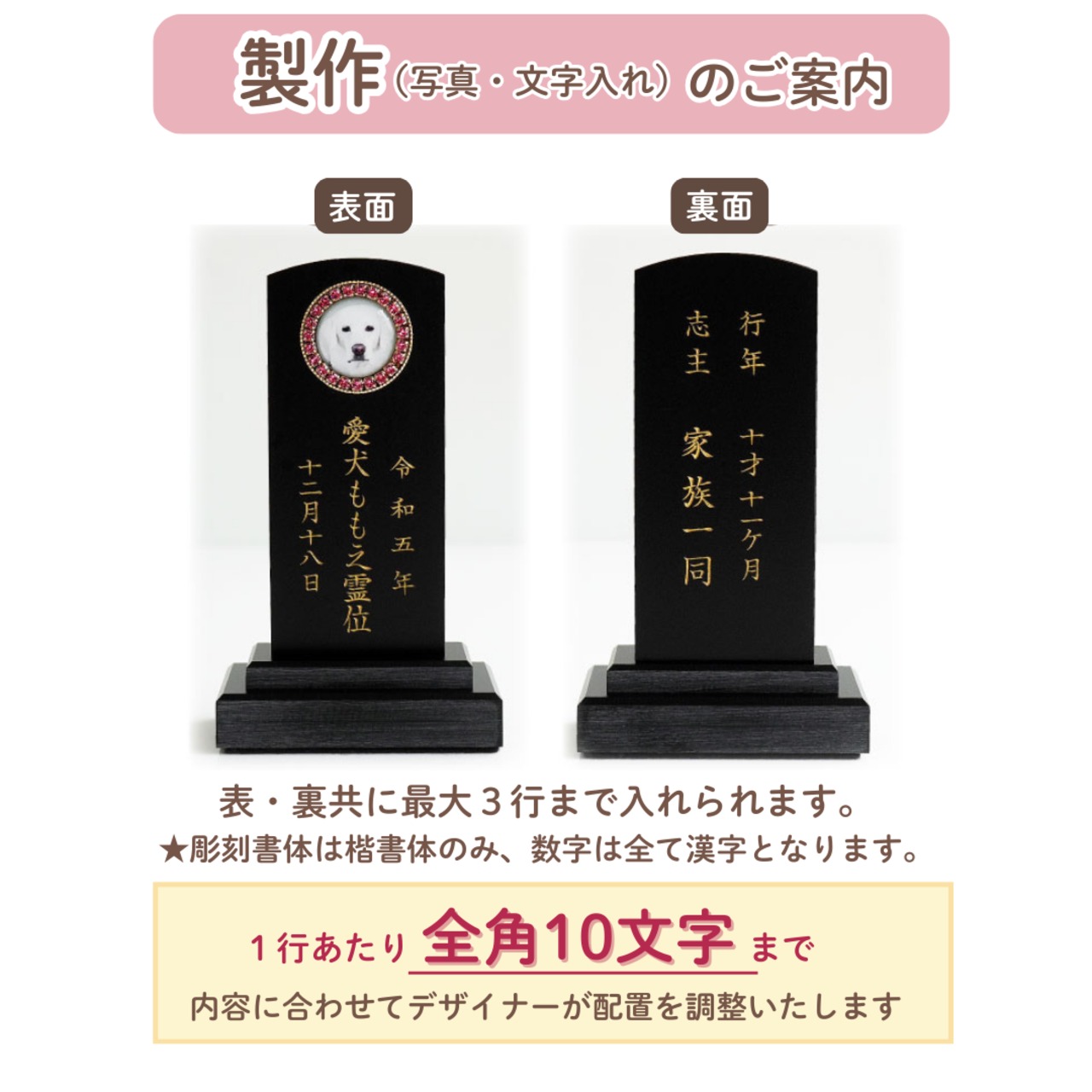 裏面彫刻可能/表面裏面共に最大3行