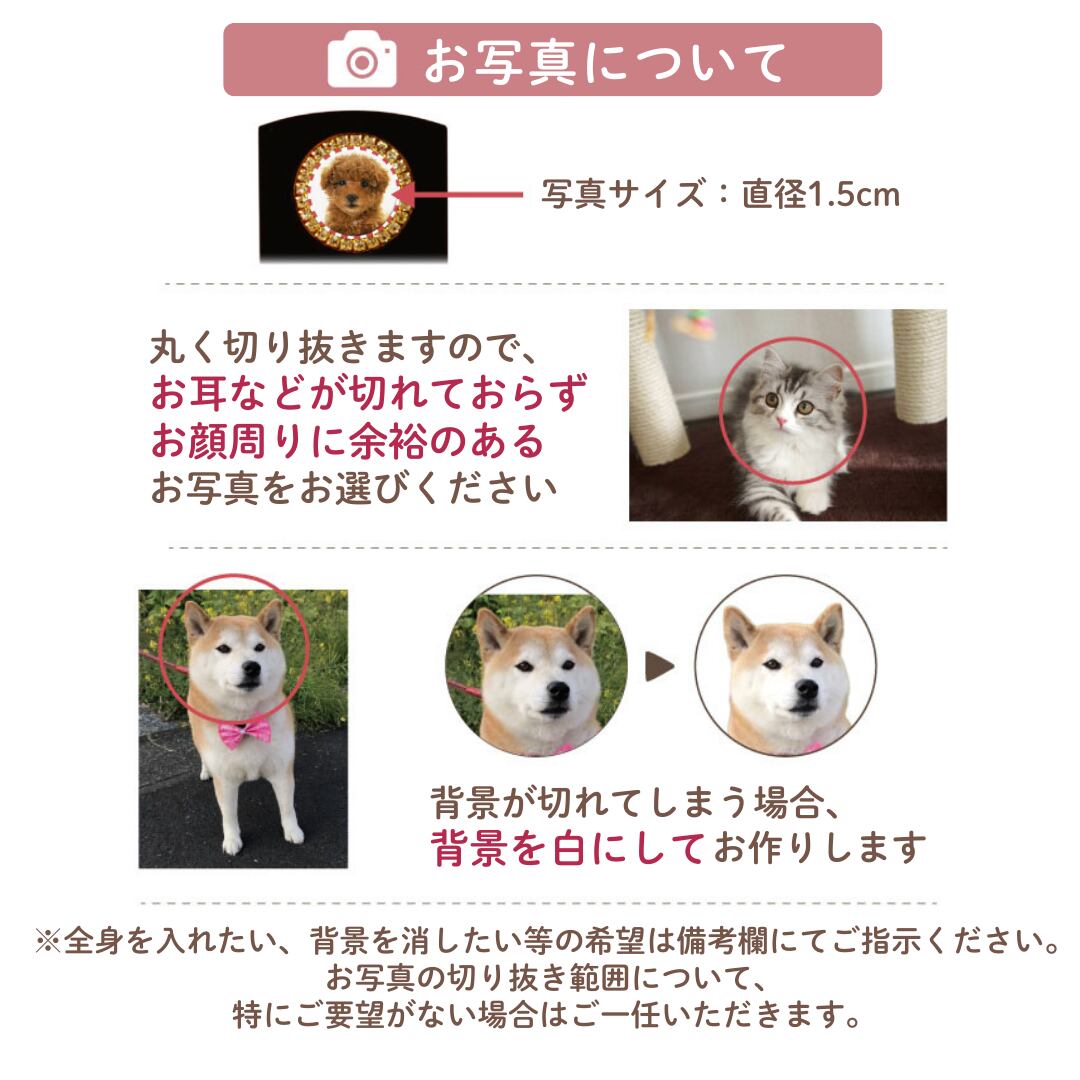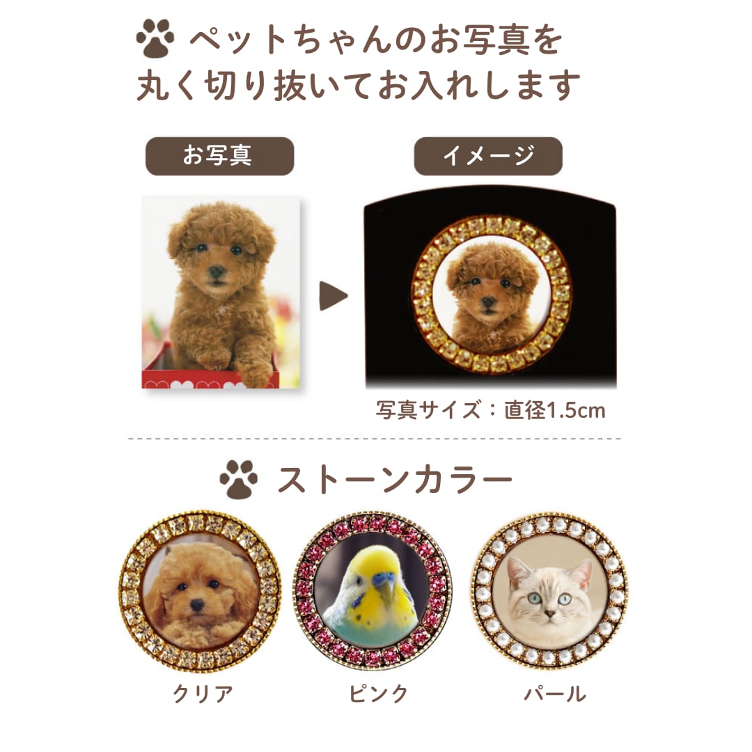 きらきらした飾り石が、ペットちゃんのお顔を明るく可愛く飾ります。