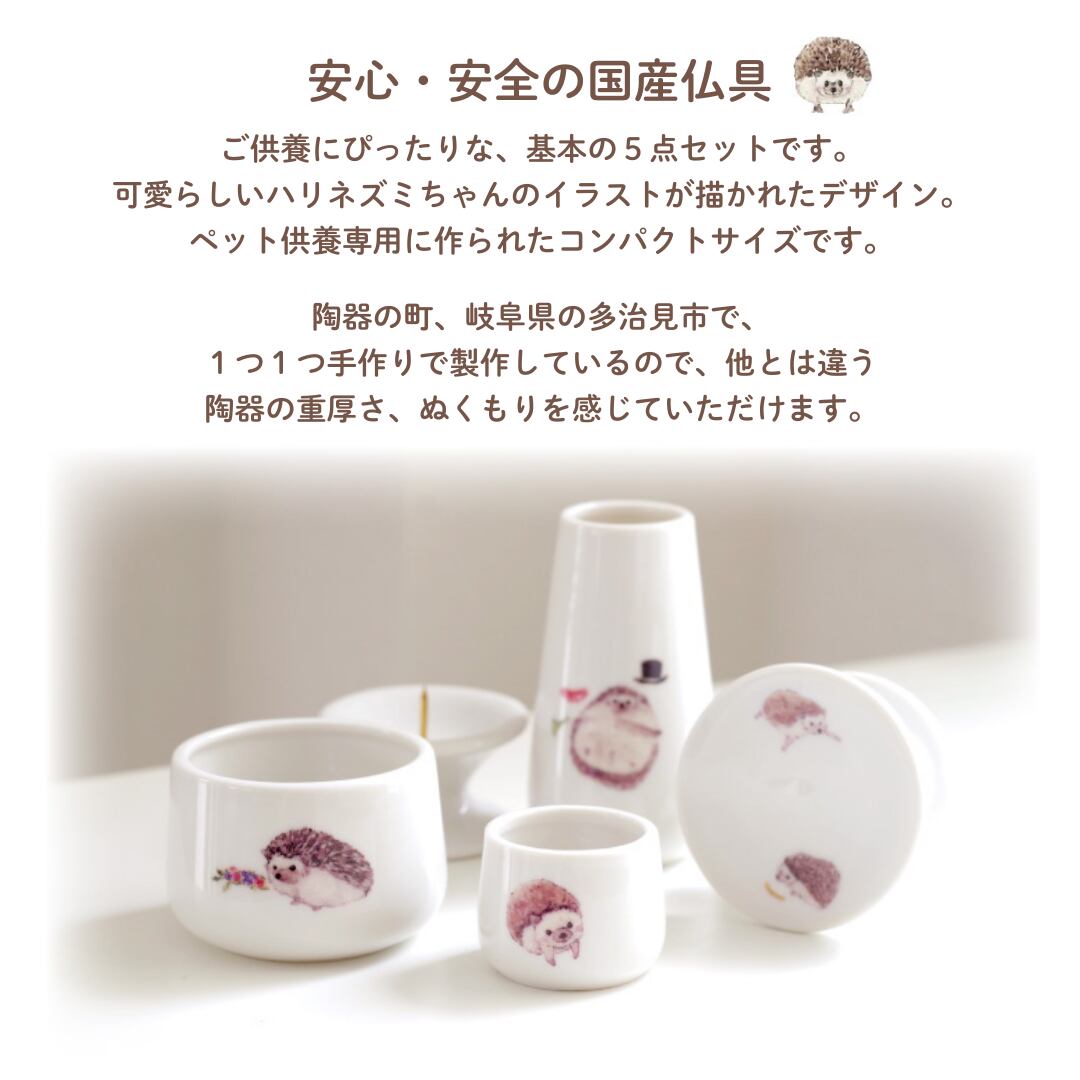 ペット 仏具 仏具セット かわいい メモリアルグッズ ペット供養 「ハリネズミちゃんの仏具5点セット」