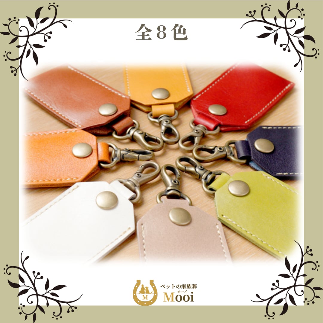 ペットちゃんのお骨を納めた遺骨カプセルを大事に守る、本革製のケースです。どんな場所にも連れて行ってあげられるシンプルな無地タイプ。あの子に似合うカラーをお選びください。