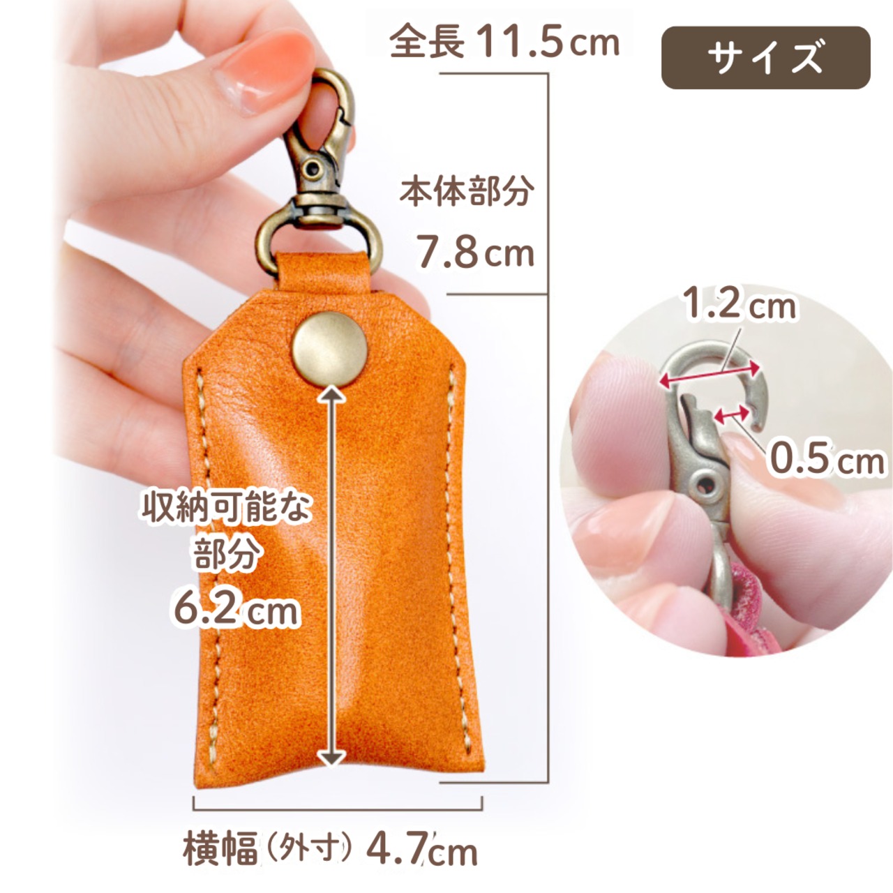 外寸:幅4.7×高7.8cm (金具含縦11.5cm)