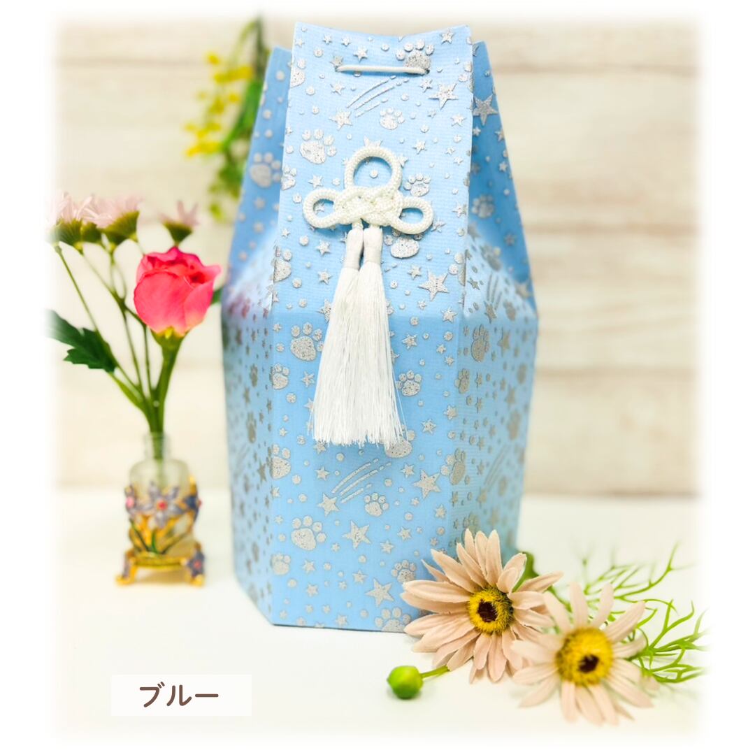 家族にたくさんの笑顔をくれたペットちゃんによく似合う、きらきら星をちりばめた可愛いペット骨壷用のカバーです。