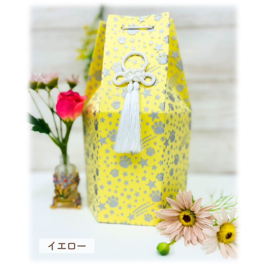 家族にたくさんの笑顔をくれたペットちゃんによく似合う、きらきら星をちりばめた可愛いペット骨壷用のカバーです。