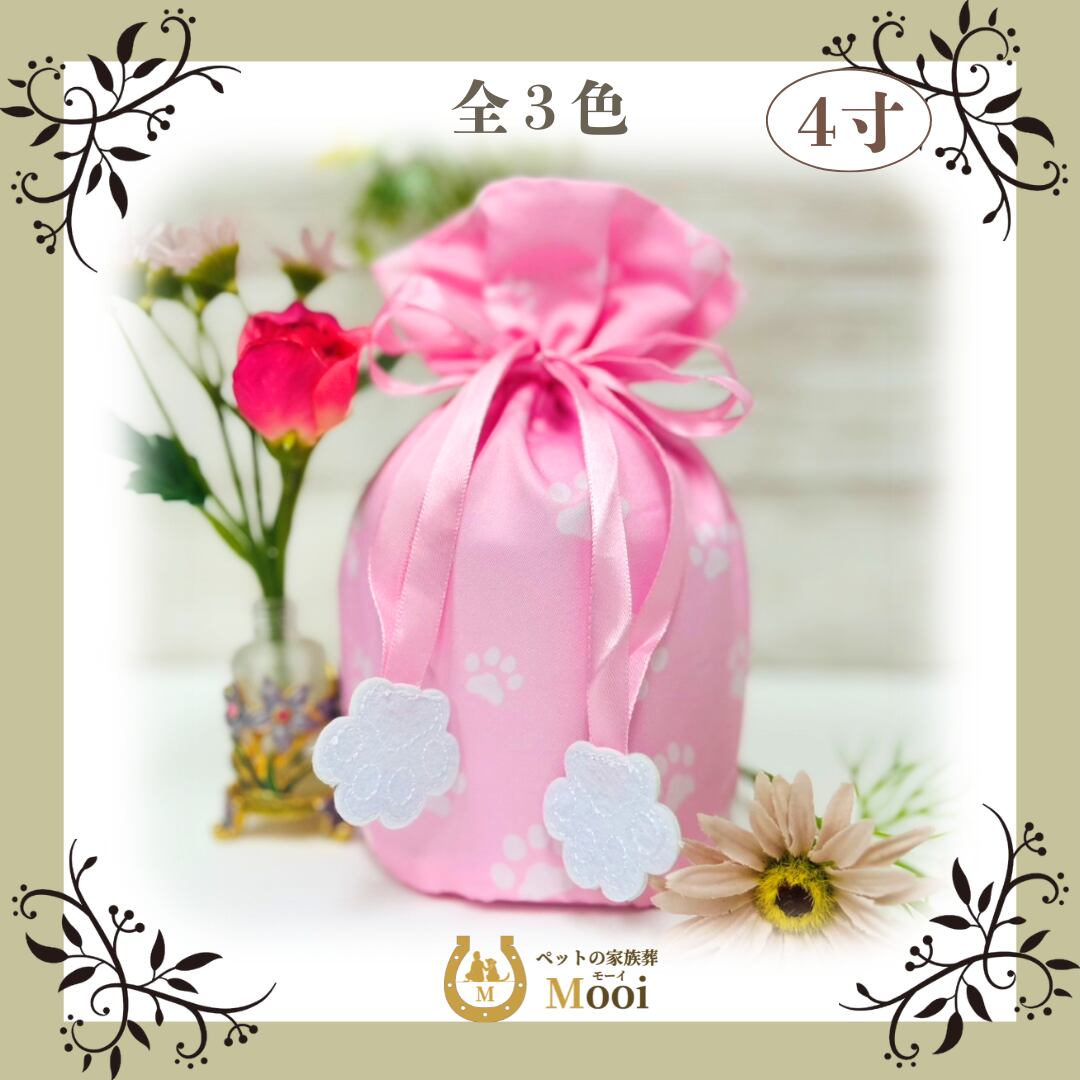 ペット 仏具 4寸 骨袋 かわいい メモリアルグッズ ペット供養 「巾着骨袋4寸 足あと」