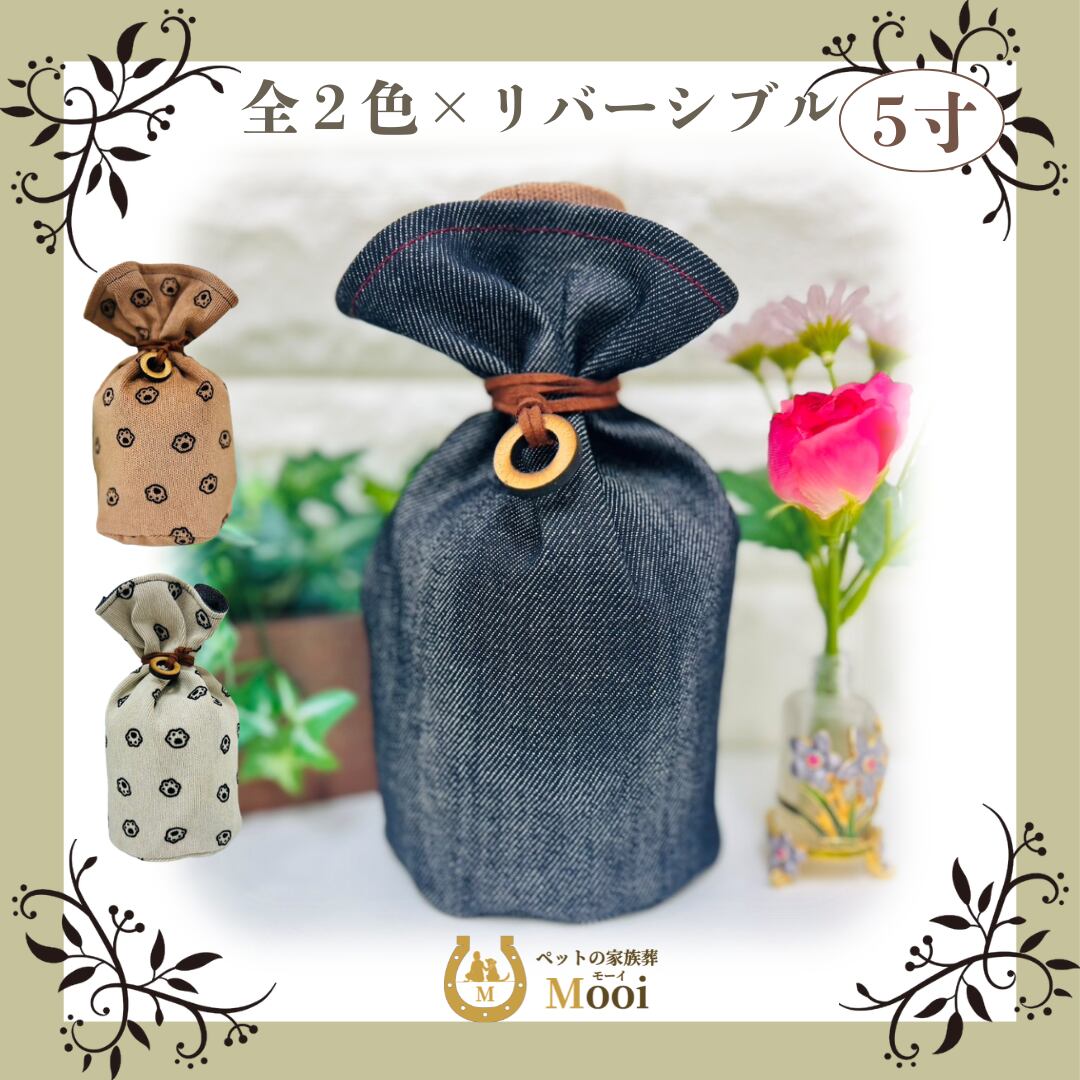 ペット 仏具 5寸 骨袋 かわいい メモリアルグッズ ペット供養 「骨袋5寸 デニム×足あとリバーシブル」