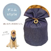 デニムと足あと柄のリバーシブル仕様がポイントの骨袋。デニム面はカジュアルな印象で、足あと柄面は可愛らしい印象です。