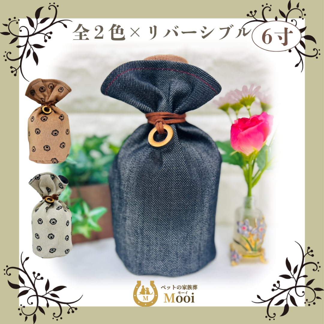 ペット 仏具 6寸 骨袋 かわいい メモリアルグッズ ペット供養 「骨袋6寸 デニム×足あとリバーシブル」