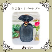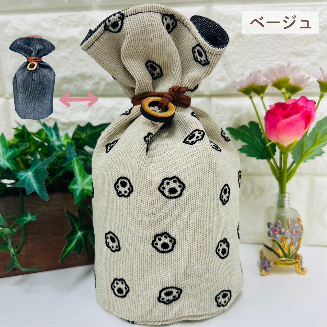 デニムと足あと柄のリバーシブル仕様がポイントの骨袋。デニム面はカジュアルな印象で、足あと柄面は可愛らしい印象です。